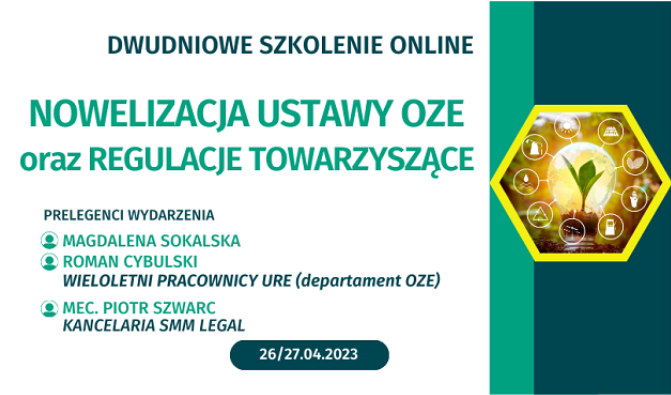 DlaEnergetyki.pl organizuje szkolenie online “Nowelizacja ustawy o odnawialnych źródłach energii oraz regulacje towarzyszące”.
