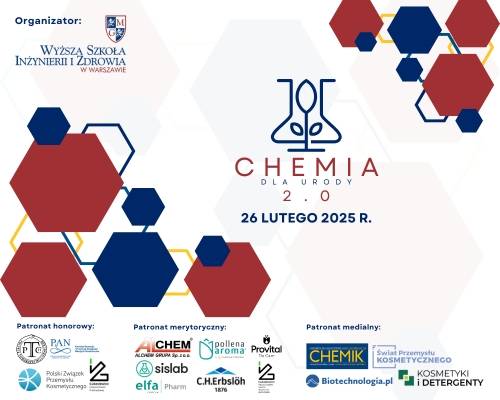 Wyższa Szkoła Inżynierii i Zdrowia w Warszawie zaprasza na Ogólnopolską Konferencję Naukową „Chemia dla Urody 2.0”, która odbędzie się 26 lutego 2025 r. na II Kampusie uczelni przy Alejach Jerozolimskich 195A.